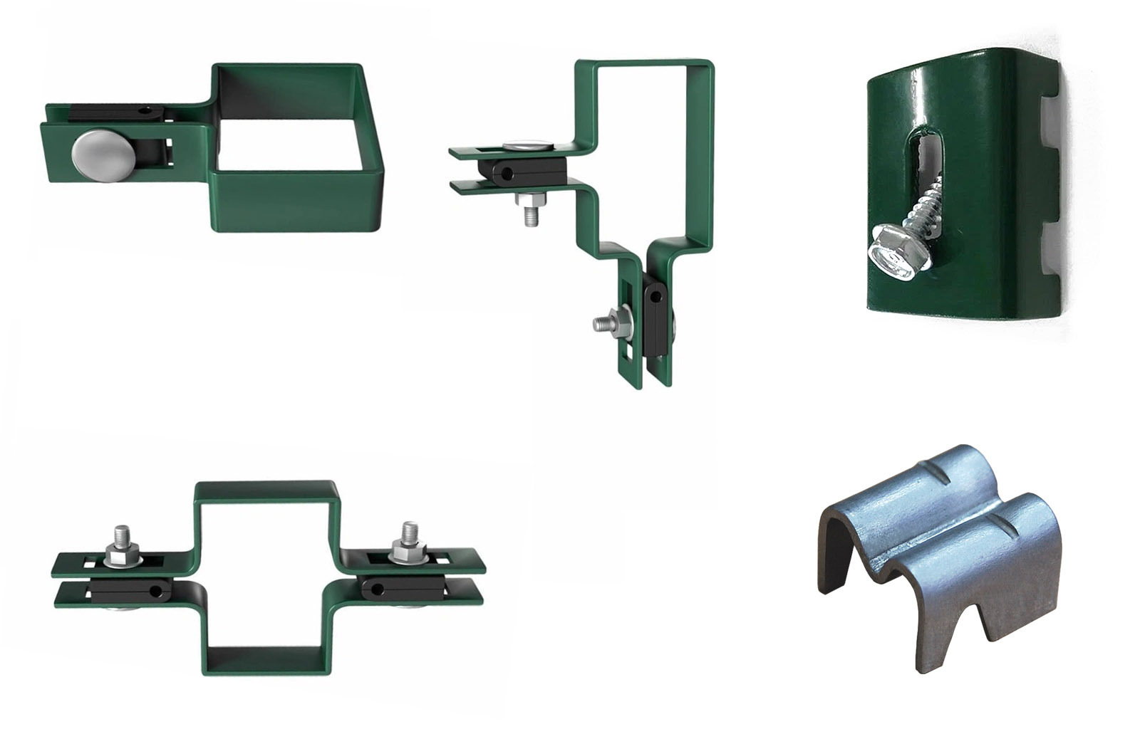 Этот тип крепежа охватывает прутья панели с двух сторон и крепится к столбу саморезом.