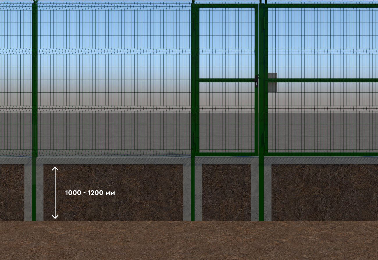 3д-панели (или «Гиттер») имеют V-образные или U-образные горизонтальные изгибы (ребра жесткости), которые придают конструкции объем и значительно повышают устойчивость к деформации при попытках перелезания или силовом воздействии. Стандартный диаметр прутка для 3д-панелей обычно составляет 4–5 мм. Для спортивных площадок допускается использование 3д-панелей с прутком 5 мм, однако важно понимать, что они будут несколько уступать по ударопрочности усиленным 2д-конструкциям.