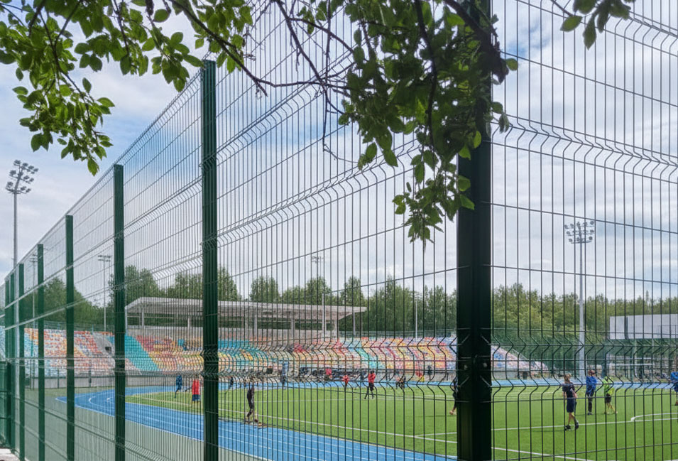 Для детских площадок (где риск мощных ударов ниже, но важна эстетика и безопасность) лучше подходят 3д-панели с ребрами жесткости: они лучше амортизируют удар мяча и меньше «играют» при ветровой нагрузке, хотя сами по себе сетчатые конструкции обладают низкой парусностью.